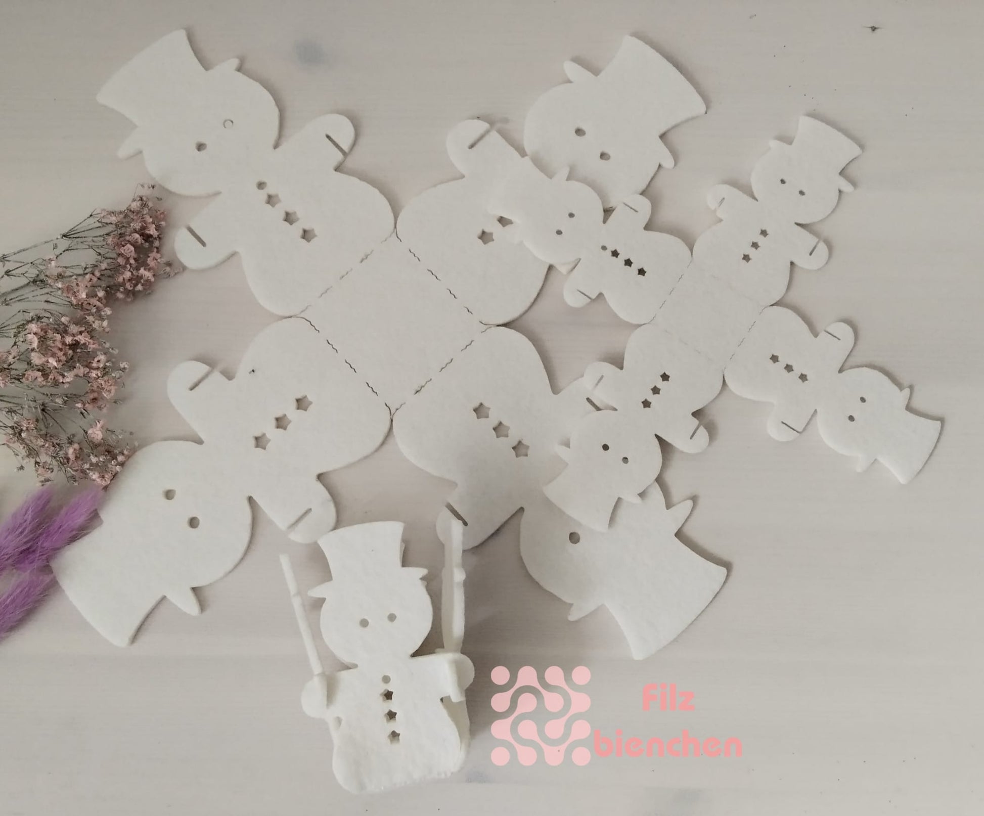 Diese 4er Klappbox groß mit Schneemann-Motiv ist perfekt, um kleine Süßigkeiten liebevoll zu verpacken. Gefertigt aus 3 mm dickem Filz aus 100 % Polyester, hält sie Ihre Leckereien oder Piccolo Flaschen sicher und macht dabei mit ihrem fröhlichen Design richtig Spaß. Aufgeklappt misst die Box 24x24 cm – ideal für kleine Überraschungen mit großer Wirkung!