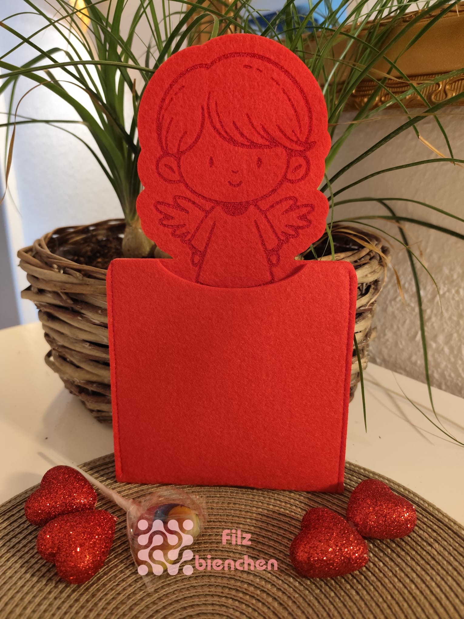 Dieses große Filz-Täschchen mit einem liebevoll gravierten Engeljungen aus 3 mm dickem, 100 % Polyester fühlt sich nicht nur wunderbar weich an, sondern bringt auch festliche Stimmung in jeden Tag. Größe 13x26 cm. Perfekt, um kleine Schätze oder winterliche Überr