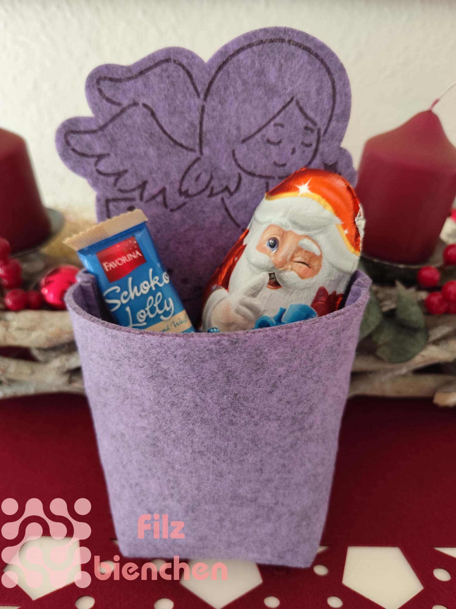 Ob als Geschenkbeutel, Tischdekoration, Adventsdeko oder kleine Aufbewahrung - diese Filztasche
