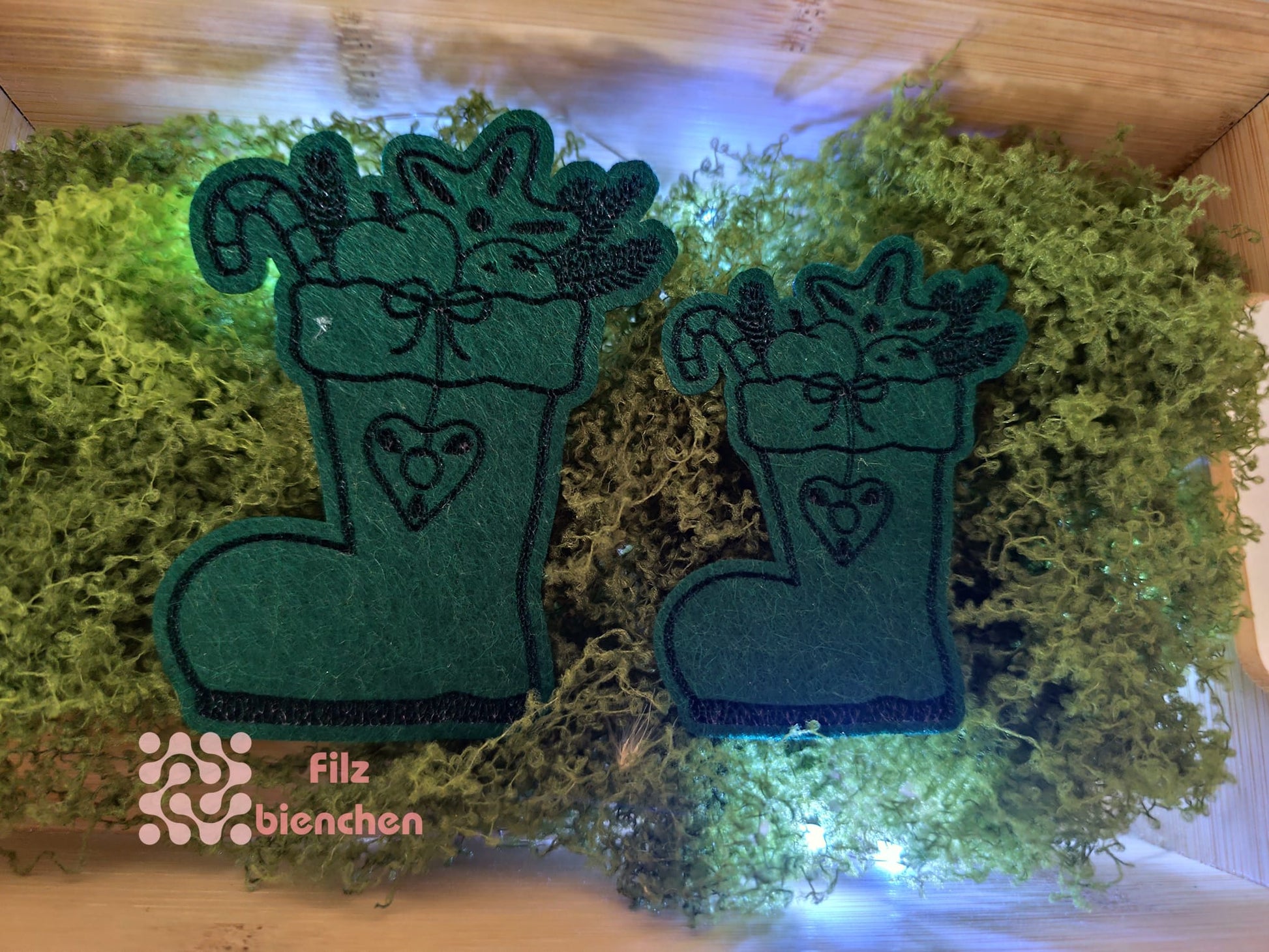 Kleine Nikolaus-Stiefel zum Verschenken oder Sammeln! Dieses charmante 7er Set aus hochwertigem Filz (100% Polyester, ca. 3mm dick) bringt festliche Freude in jedes Zuhause. Jeder Stiefel misst etwa 10 cm und ist mit einer wunderschönen Gravur versehen.