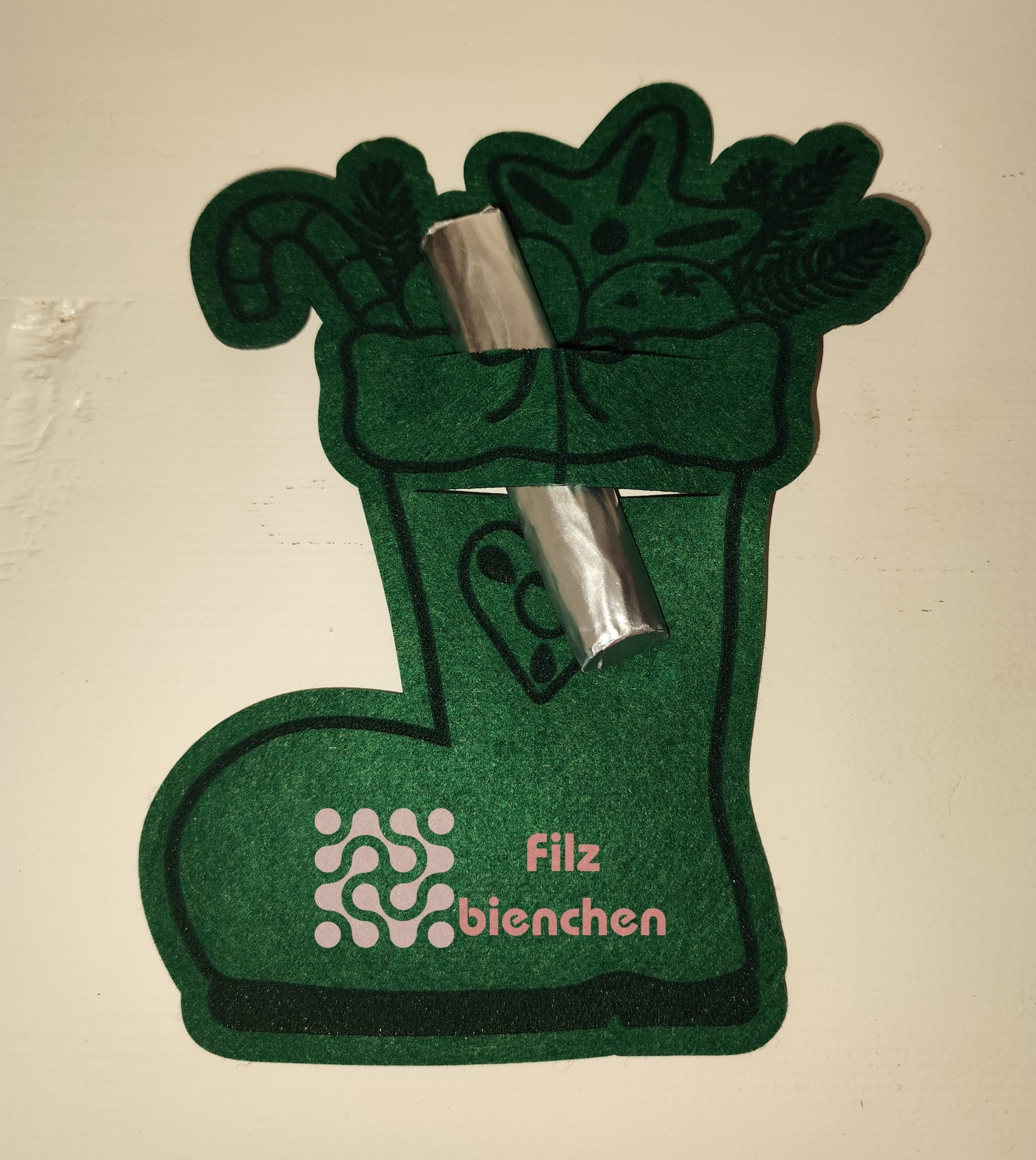 Doppelte Weihnachtsfreude mit diesem verspielten 2er Set Nikolausstiefel aus edlem Filz (100% Polyester, 3mm). Jeder Stiefel glänzt mit persönlicher Gravur und großzügigen 19x14 cm – perfekt zum Verstecken von Schokolade und kleinen Überraschungen. Mit ihrem Mix aus klassischem Charme und modernem Twist bringen diese Stiefel Spaß und Tradition zugleich in Ihr Zuhause. Ein charmantes Accessoire, das Ihre Festtage garantiert zum Lachen bringt.