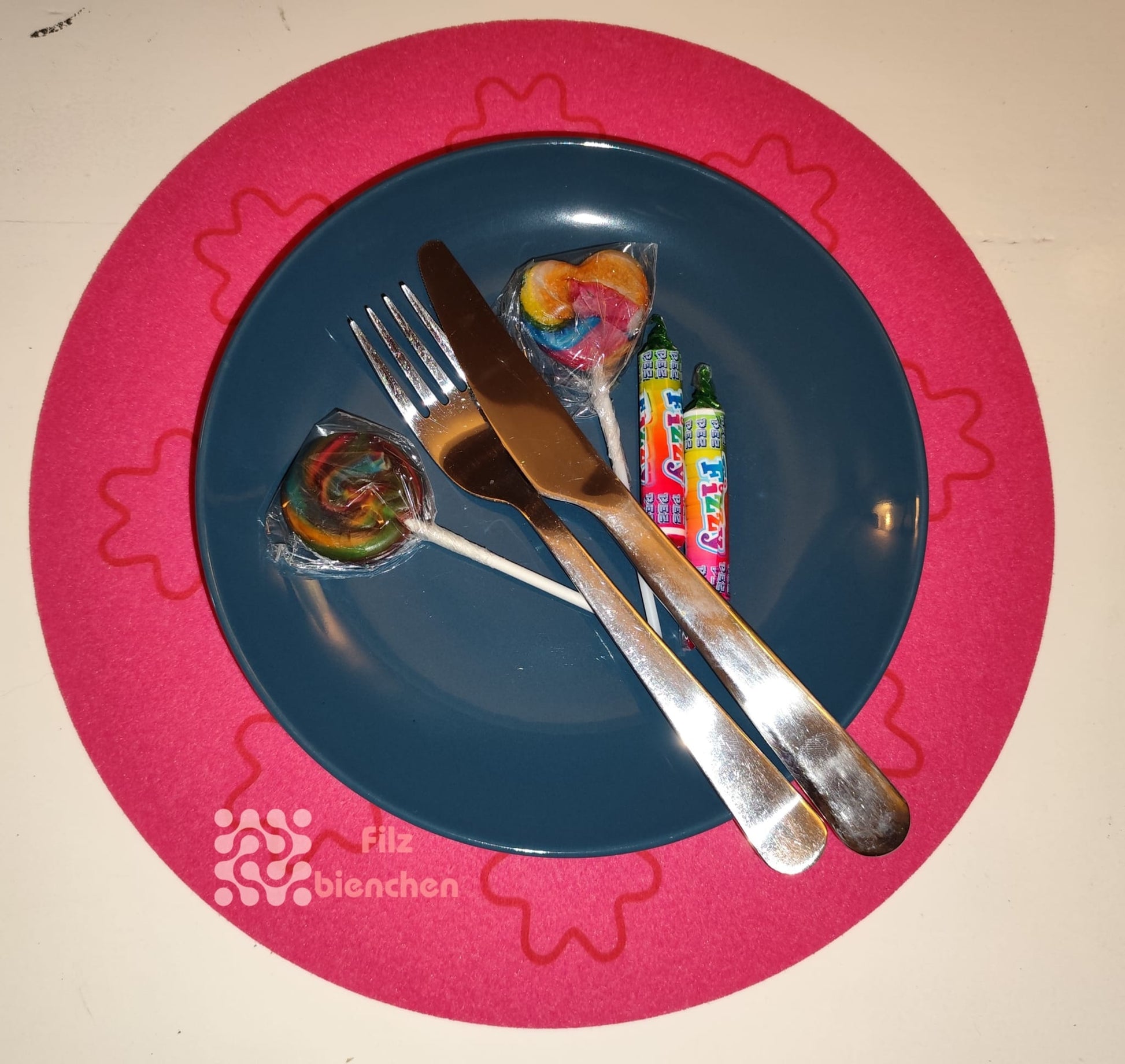 Dieses Platzdeckchen in Form einer Schultüte eckige misst ca. 30x30 cm und besteht aus ca. 3 mm dickem Filz aus 100 % Polyester. Es eignet sich ideal für Kindergeburtstage und sorgt mit seiner robusten, pflegeleichten Materialqualität für eine langlebige und dekorative Tischunterlage. Die kindgerechte Form bringt spielerischen Charme auf den Tisch und schützt gleichzeitig vor Flecken und Kratzern.