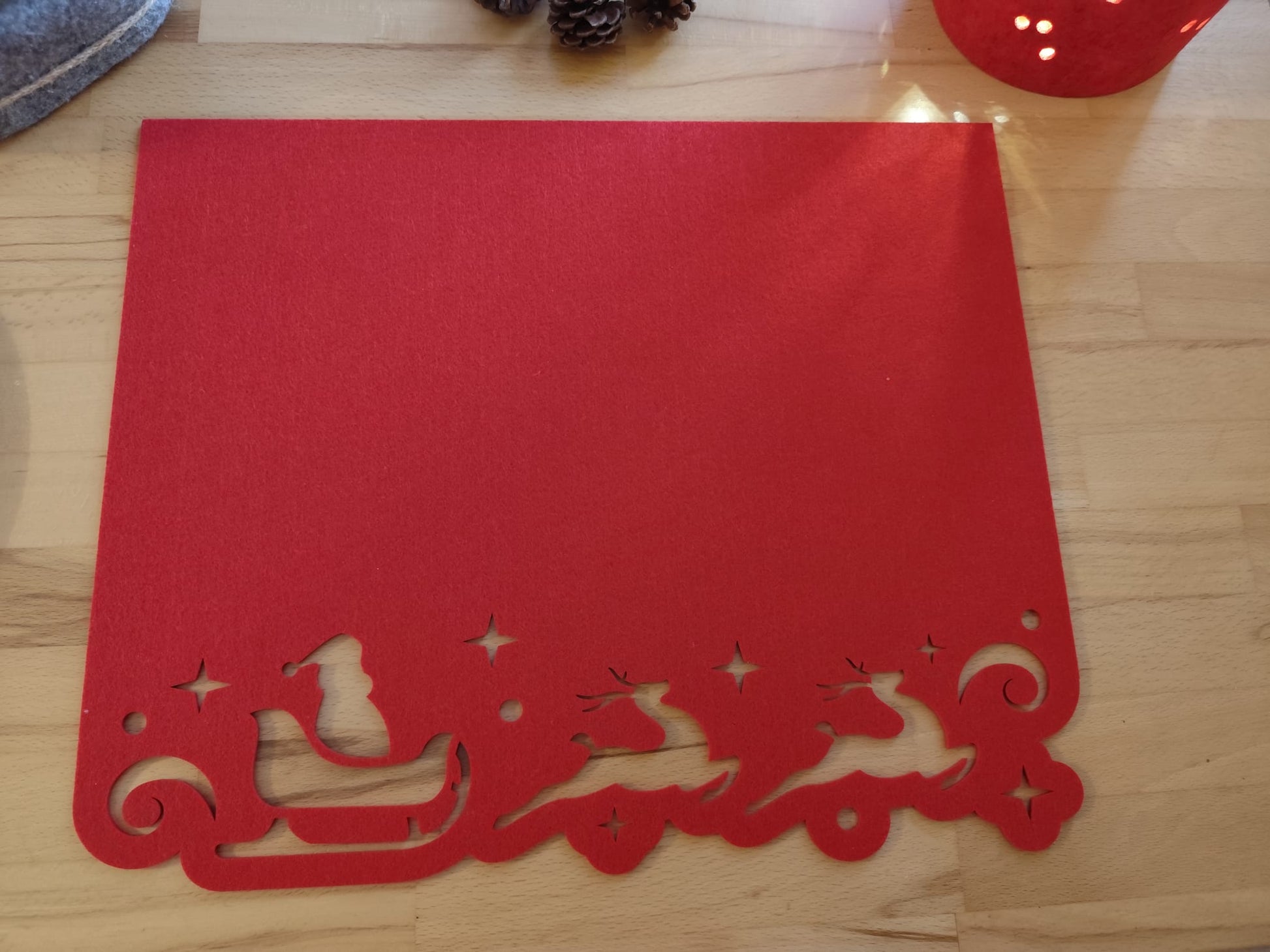 Festliches Platzdeckchen mit charmanten Weihnachtsmotiven – der perfekte Tischschmuck für die Adventszeit! Dieses liebevoll gestaltete Filz-Platzdeckchen zeigt einen Weihnachtsmann mit seinem Schlitten und bringt weihnachtliche Wärme auf jeden Esstisch. Mit großzügigen Maßen von etwa 42 x 35 cm bietet es ausreichend Platz für Teller und Besteck. Das hochwertige, 3 mm dicke Filz aus 100% Polyester ist robust, pflegeleicht und langlebig – Jahr für Jahr ein treuer Begleiter durch die Weihnachtszeit. Ein verspieltes Detail, das Groß und Klein begeistert!