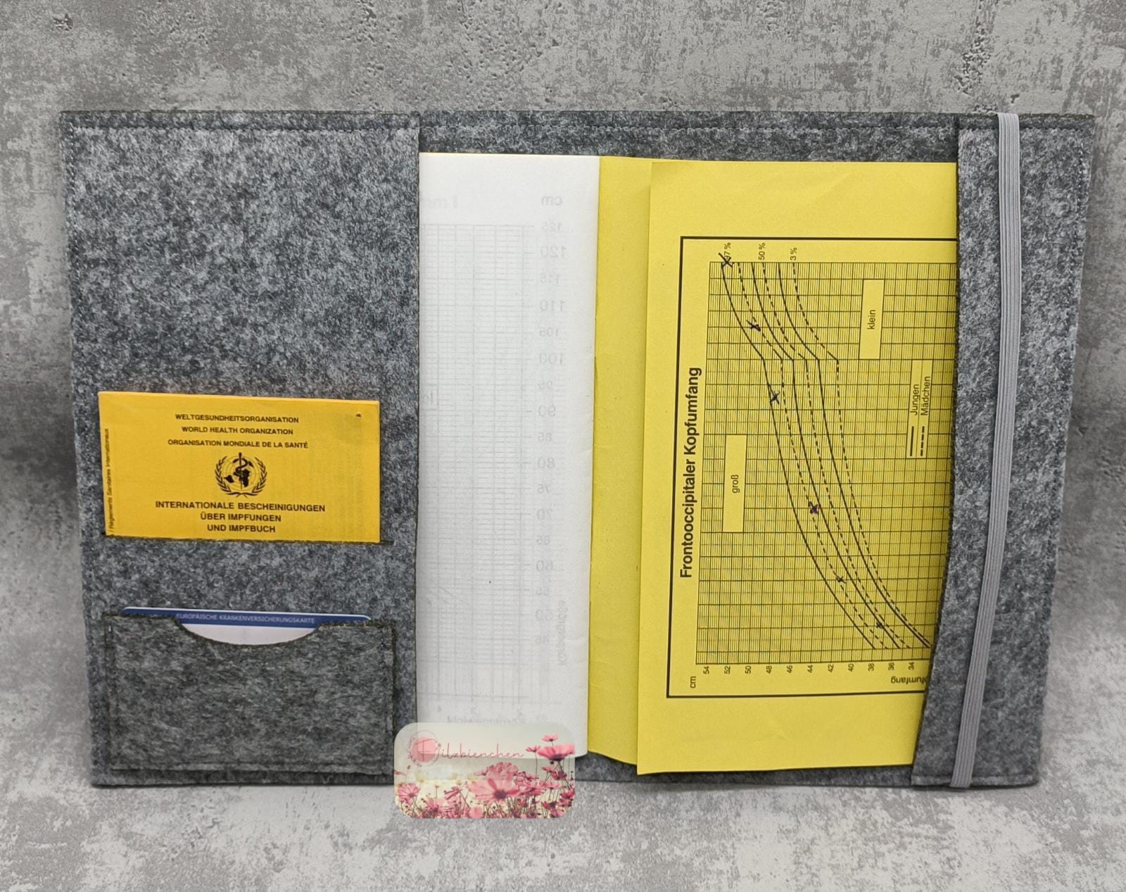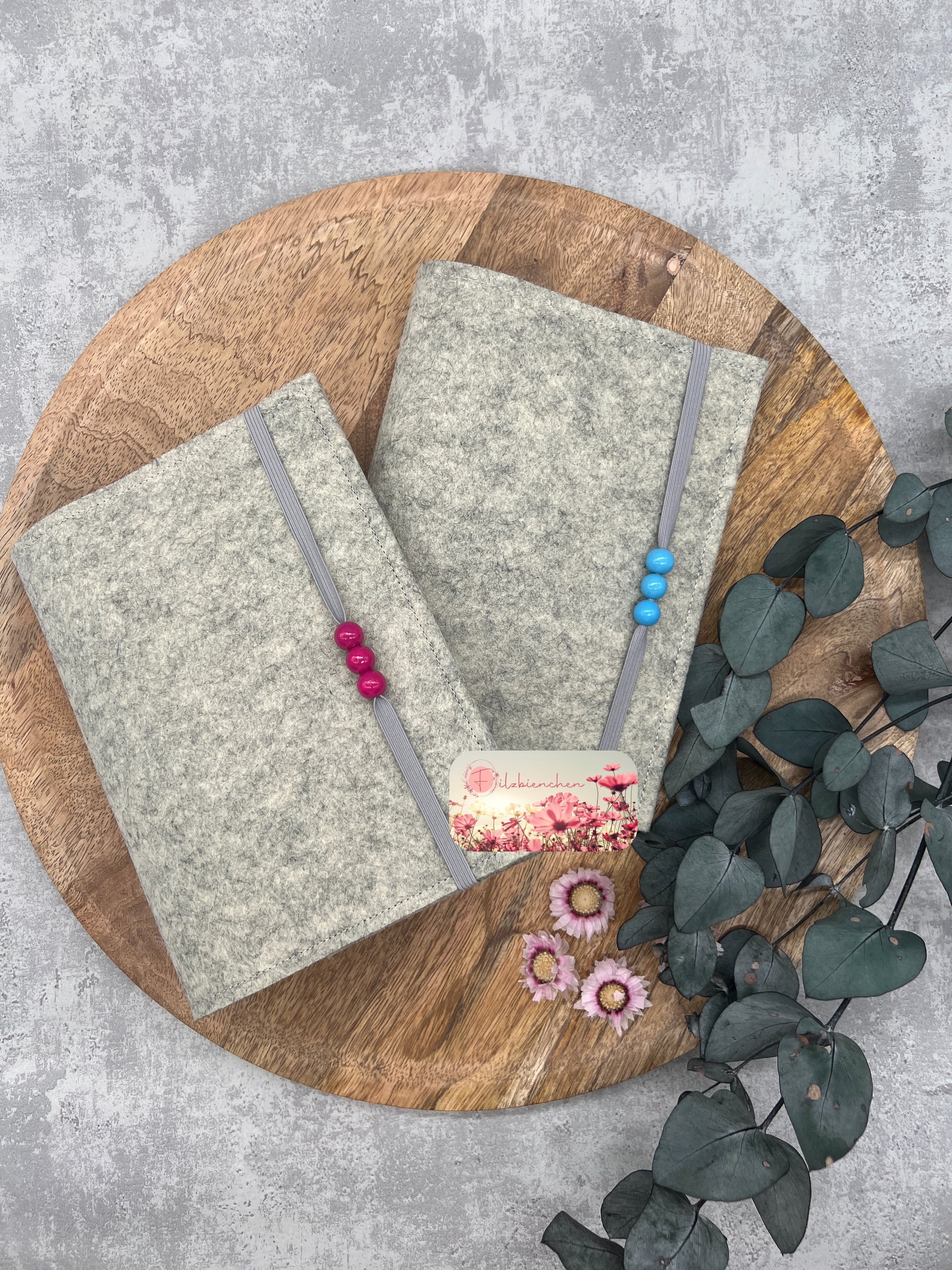 Untersuchungshefthülle mit Aufsatztasche und 3 farbigen Perlen deiner Wahl